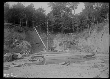 Derrick design varied to some degree, as can be seen by the use of cables along the boom to reinforce it, as seen in this image from 42783_Bluestone_Jockey Hill, dated 1913, from photo page. (Thanks to Chet Hartwell for pointing this out.)